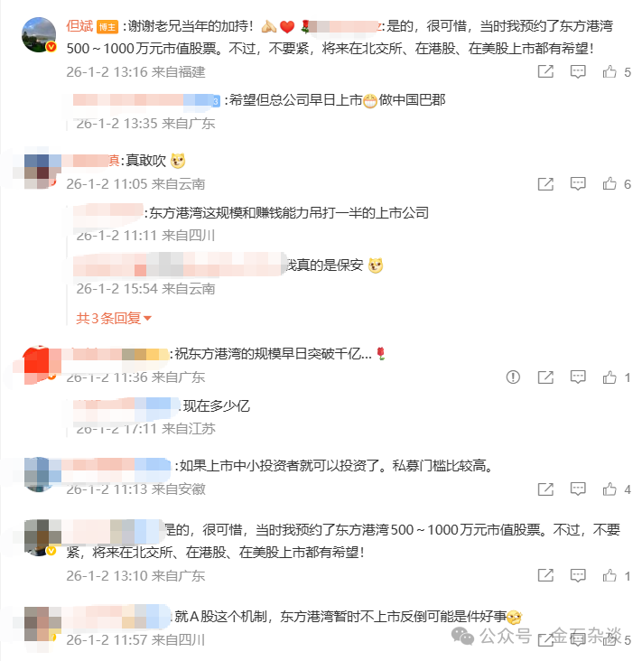 1月2日音问,新年起原,闻明私募大佬但斌发微,抒发了对东方港湾错失上市的缺憾。