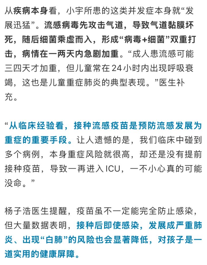 好多家长不明,为什么庸俗流感在孩子身上进展这样快?杨医师阐发,这与儿童的生理特质和疾病自身的严重性关联,两者重复显耀增多了重症风险。