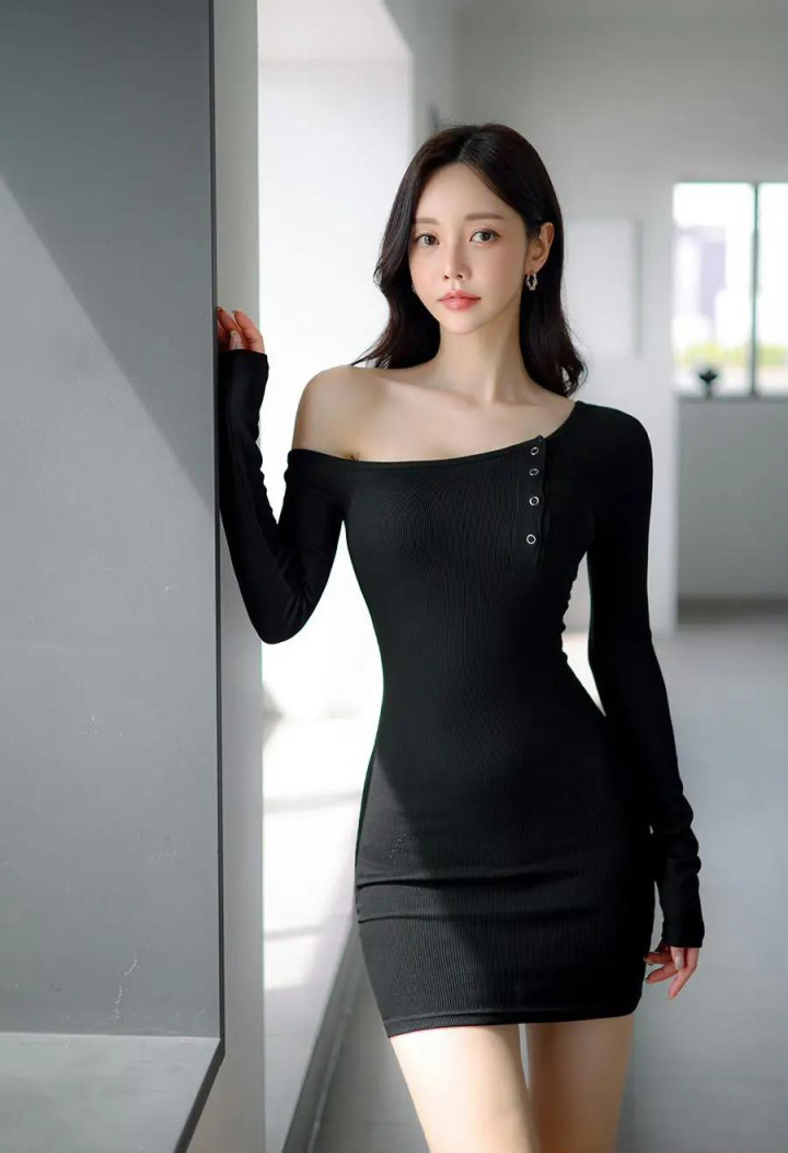 黑纱单肩收腰短裙